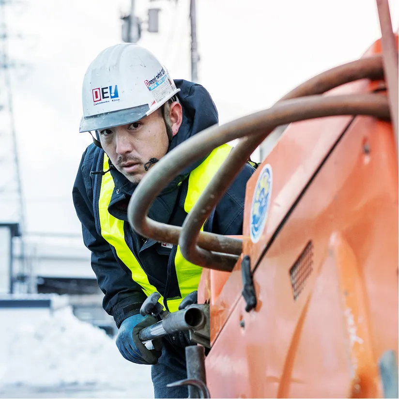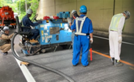 また、コンクリート舗装の打替え 工事においては、周囲の環境を 配慮し、低騒音、無振動施工が 可能なバースター工法等のダイ ヤモンド工事機械をご提案し施工 に当たっております。