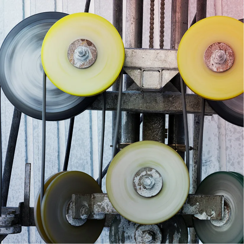 ダイヤモンドワイヤーを被切断物に巻付け、ワイヤーソーマ シンで切断する工法。